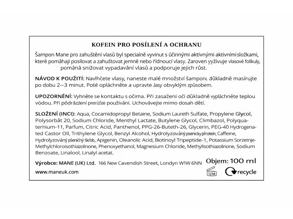 Mane šampon s kofeinem pro posílení řídkých vlasů