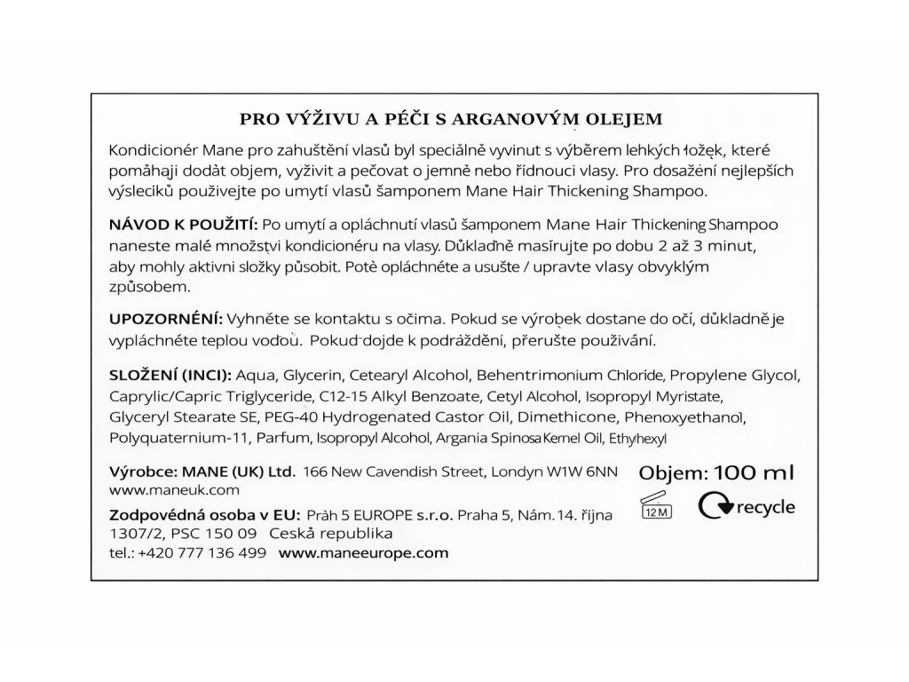 Mane šampon pro posílení vlasů je doplněním řady výrobků Mane. Jeho jemné